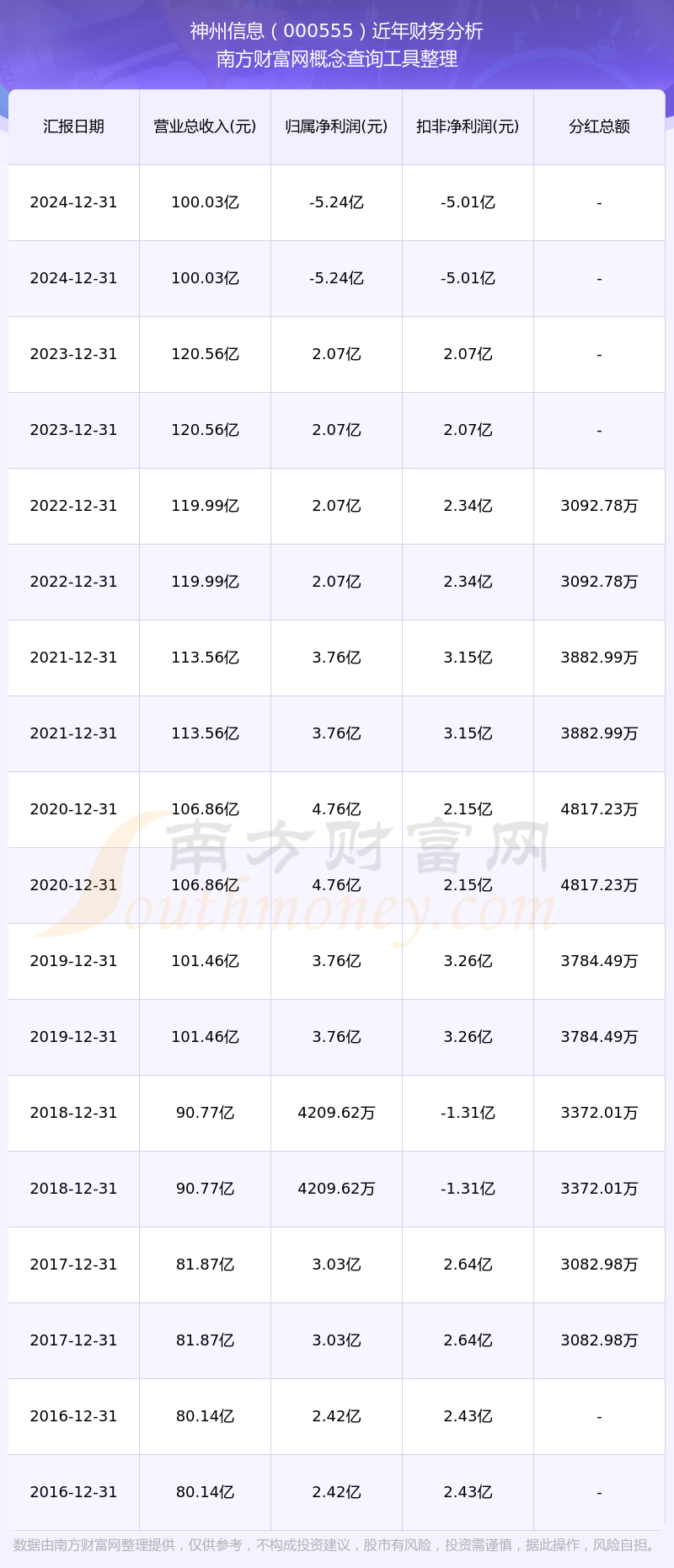 2024年神州信息總營收100.03億,同比增長-17.03%;凈利潤-5.24億,同比增長-353.01%;銷售毛利率14.94%。