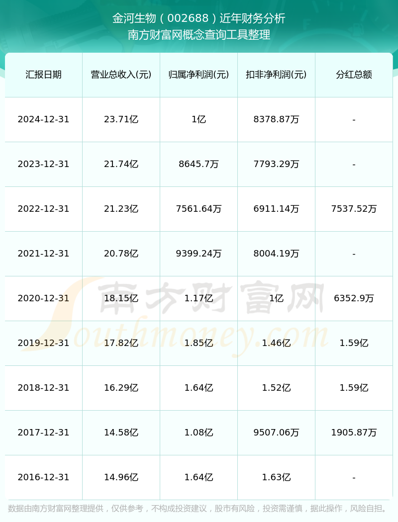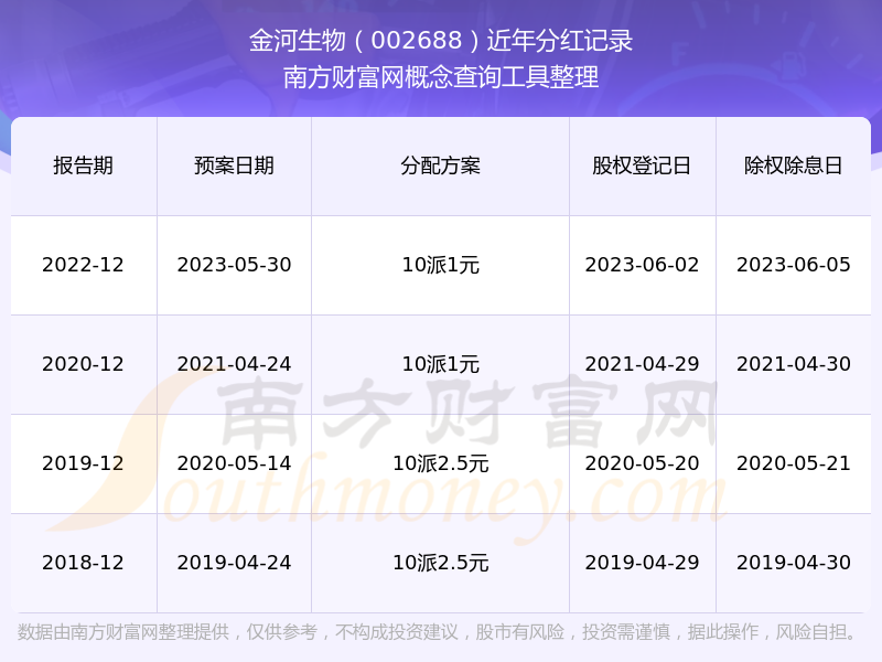 金河生物歷年分紅派息情況如下表所示: