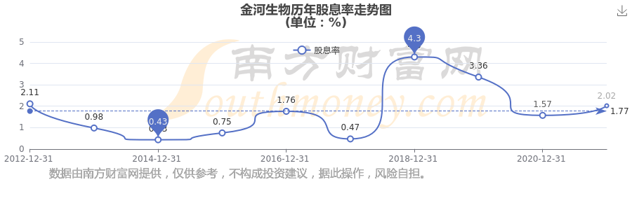 金河生物歷年股息率走勢如下圖: