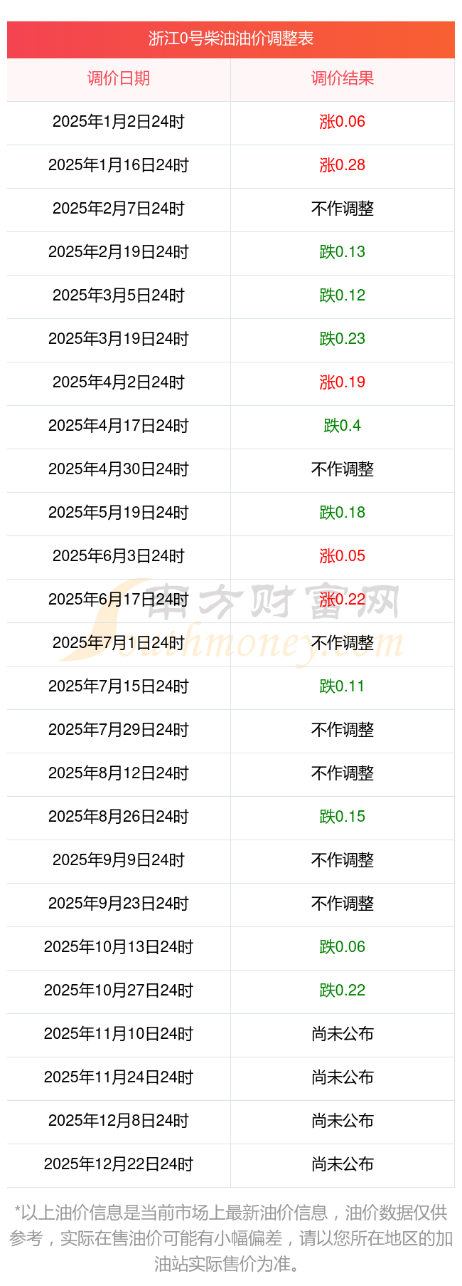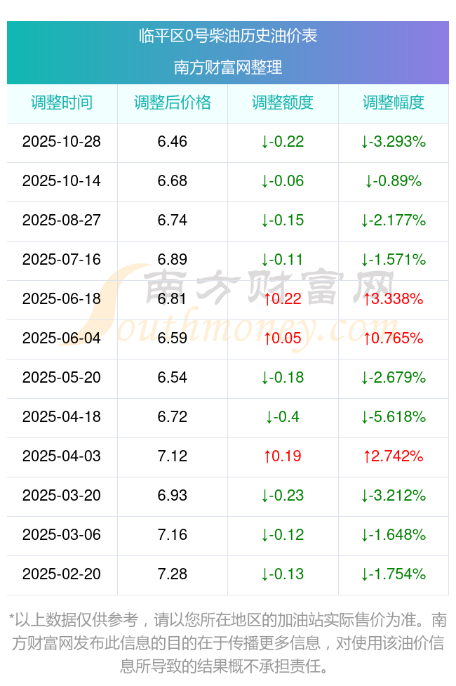 臨平區(qū)11月2日0號柴油歷史油價調整一覽表
