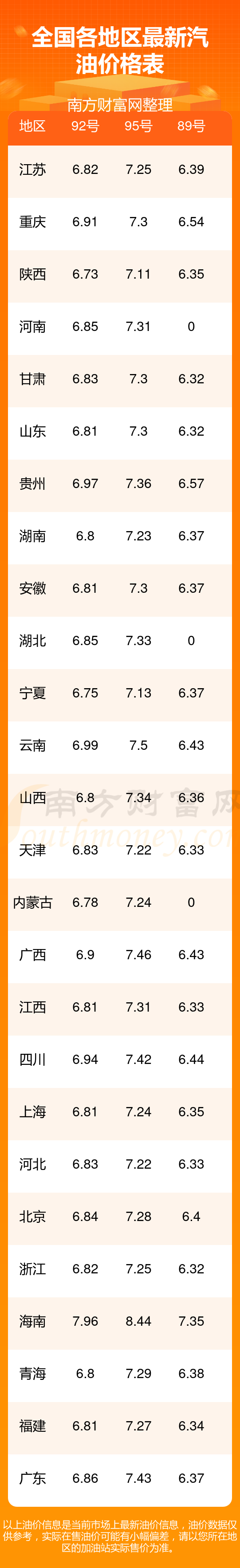2025年11月3日全國各地油價調(diào)整及最新汽油價格表