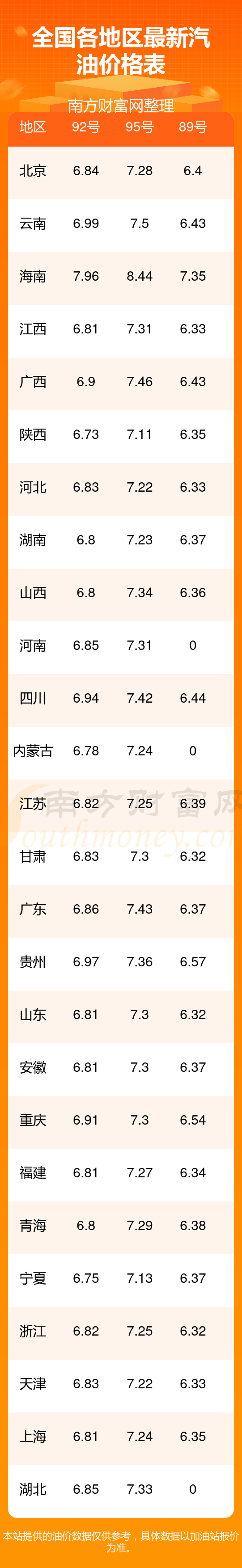 油價數(shù)據(jù)僅供參考,請以您所在地區(qū)的各加油站報價為準。