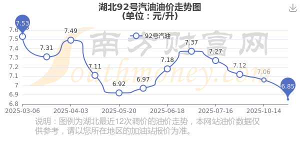 汽油價(jià)格調(diào)整最新消息:下一輪油價(jià)調(diào)整時(shí)間11月10日24時(shí)。11月3日,湖北汽油、柴油價(jià)格的調(diào)整時(shí)間為10月28日。每升最新價(jià)格為:92號汽油為6.85元,下調(diào)了0.21元;95號汽油為7.33元,下調(diào)了0.23元;0號柴油為6.47元,下調(diào)了0.22元。