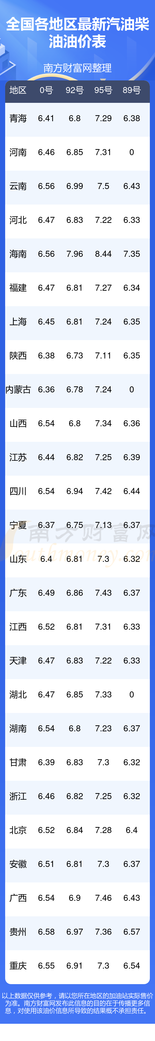 2025年11月3日全國各地油價調(diào)整及最新汽油價格表