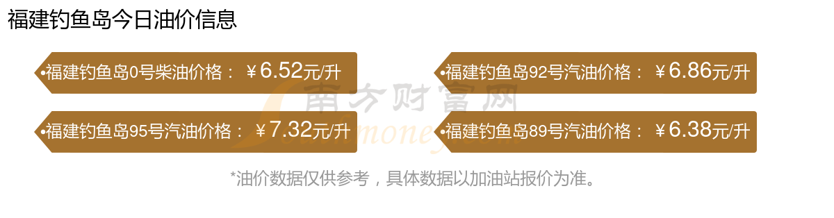 福建釣魚島95號汽油12月6日的最新價格:11月25日油價調(diào)整后,福建釣魚島95號汽油7.32元/升,相對上次調(diào)整時間11月11日的油價7.38元每升,減了0.06元,減0.813%。下一輪油價調(diào)整時間12月8日24時,距離現(xiàn)在還有2.47天。