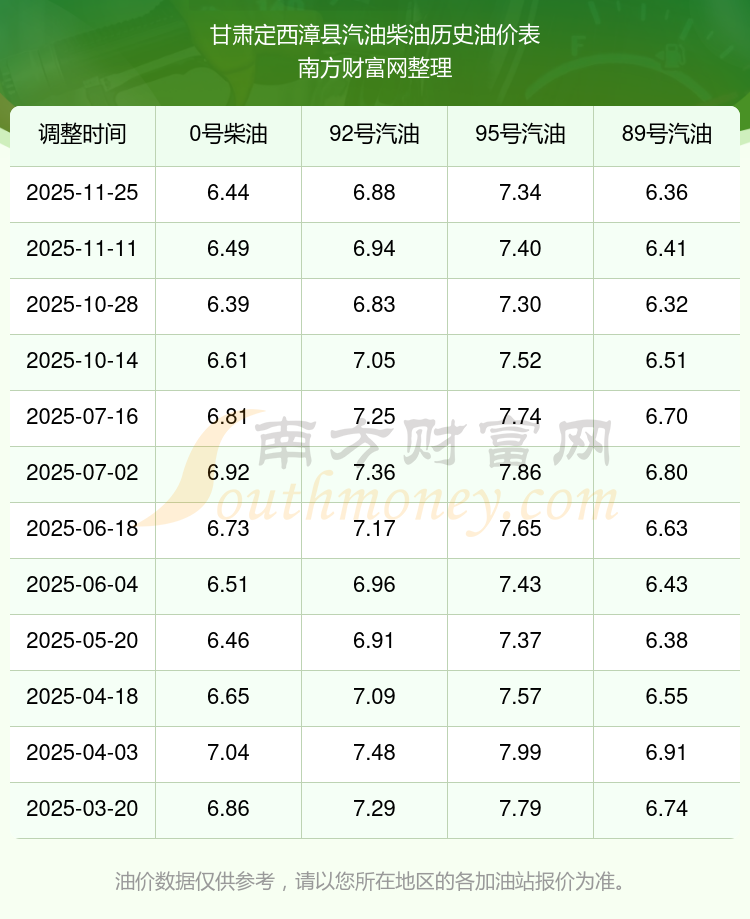2025年甘肅定西漳縣油價(jià)調(diào)整時(shí)間表