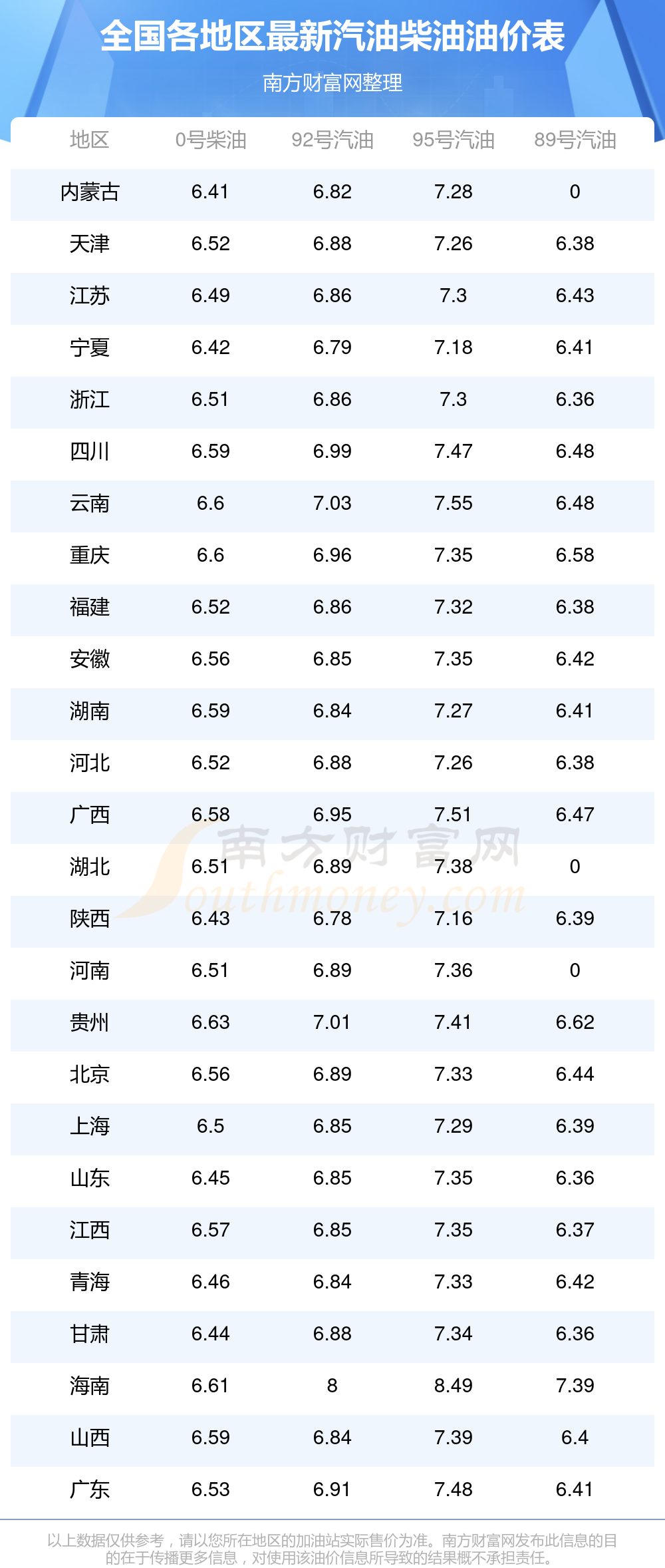 2025年12月6日全國油價調(diào)整及最新汽油價格表