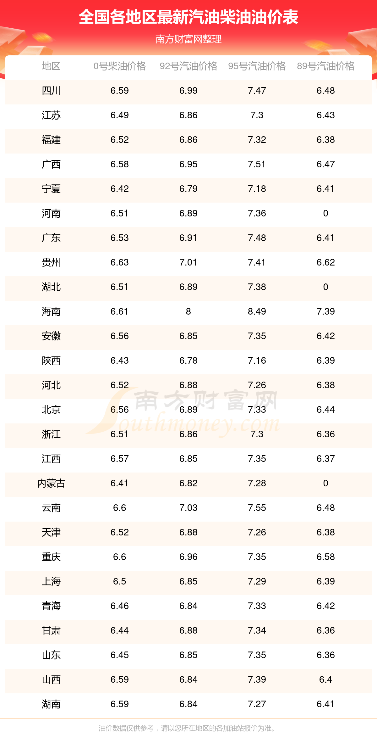 以上數據僅供參考,請以您所在地區(qū)的加油站實際售價為準。南方財富網發(fā)布此信息的目的在于傳播更多信息,對使用該油價信息所導致的結果概不承擔責任。