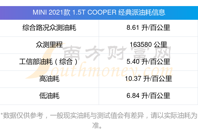 根據(jù)車主實(shí)測數(shù)據(jù),該車型低油耗為6.84升/百公里,高油耗為10.37升/百公里,綜合路況眾測油耗為8.61升/百公里,工信部綜合油耗為5.40升/百公里。