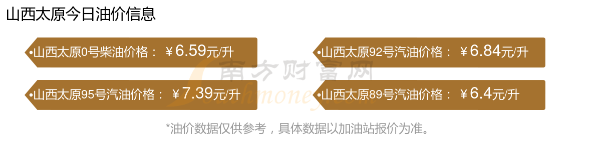 以上數(shù)據(jù)僅供參考,請以您所在地區(qū)的加油站實際售價為準。南方財富網(wǎng)發(fā)布此信息的目的在于傳播更多信息,對使用該油價信息所導致的結(jié)果概不承擔責任。