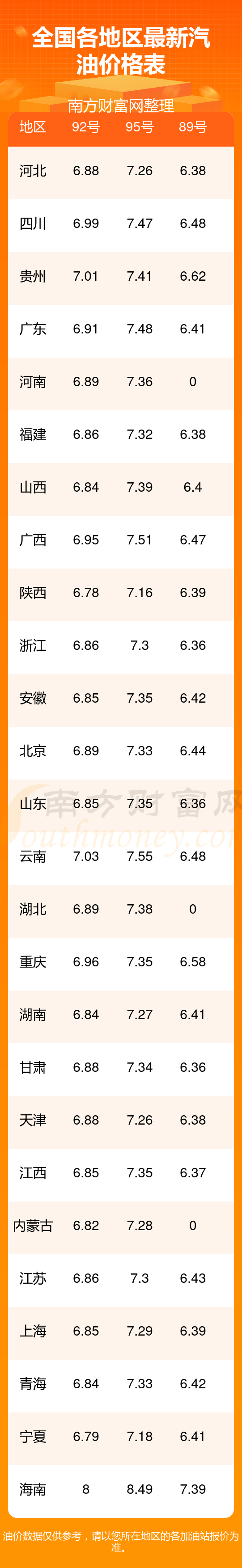 2025年和樂鎮(zhèn)12月6日汽油價格一覽表
