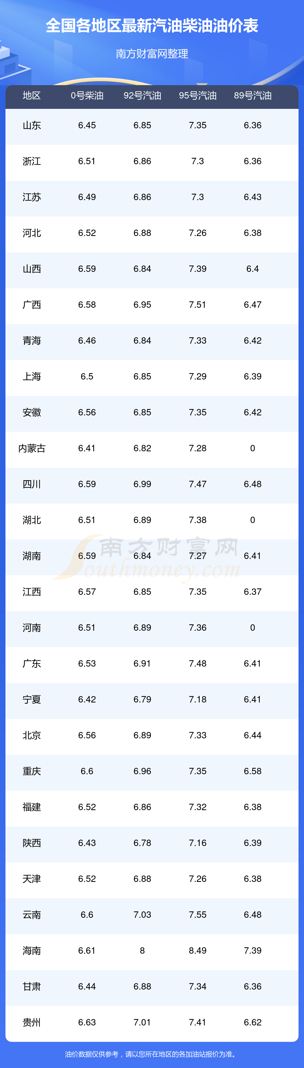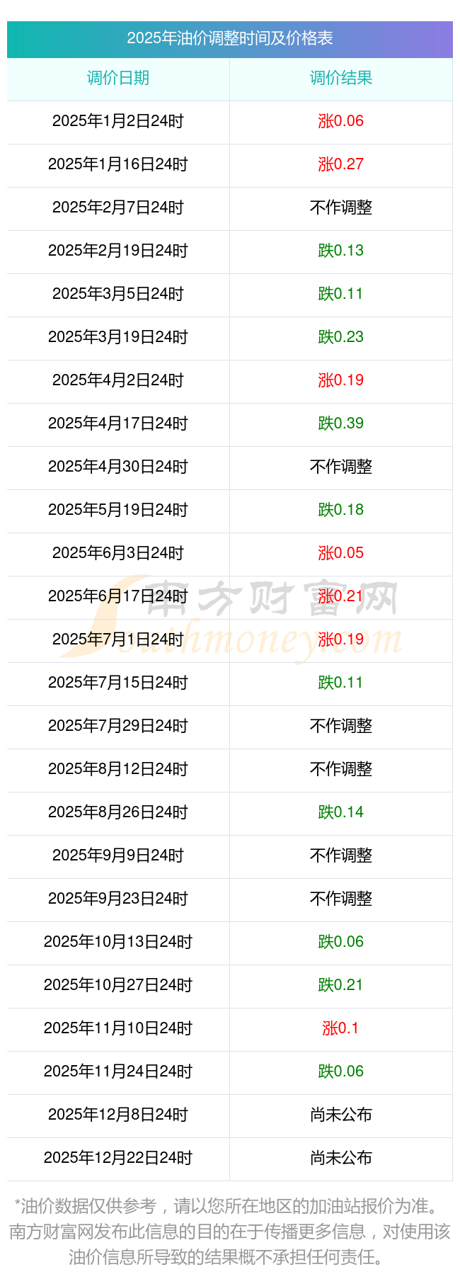 2025年12月6日全國各地油價調(diào)整時間表