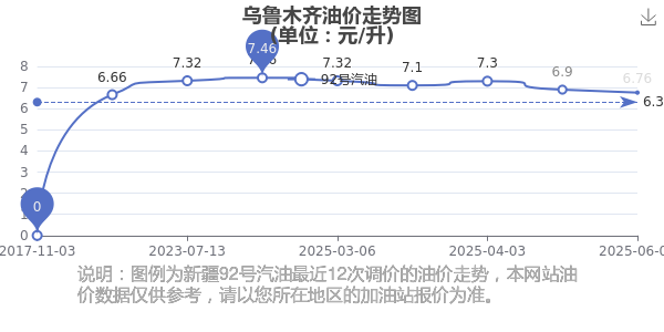 烏魯木齊汽油、柴油12月6日每升最新價格。本輪油價調整時間為11月25日。