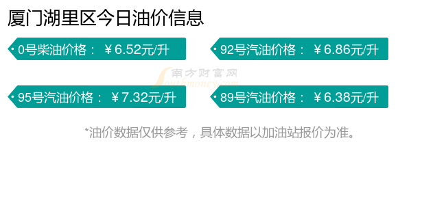 廈門湖里區(qū)12月6日汽油價(jià)格詳情:92號(hào)汽油6.86元;95號(hào)汽油7.32元;89號(hào)汽油6.38元;0號(hào)柴油6.52元(該價(jià)格為11月25日調(diào)整后的價(jià)格)。