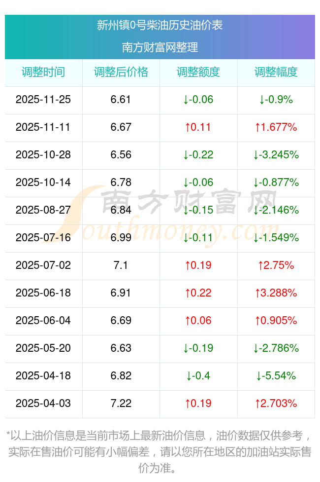 新州鎮(zhèn)0號柴油歷史油價一覽表
