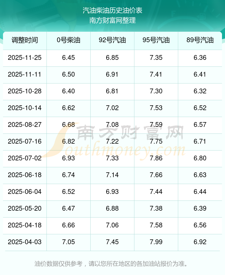 11月油價(jià)調(diào)整時(shí)間:11月10日、11月24日