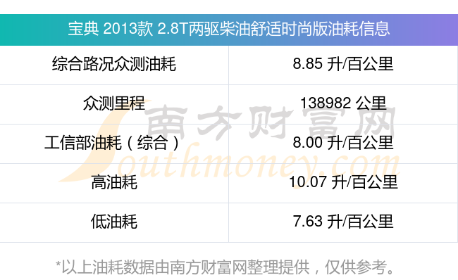 以上油耗數(shù)據(jù)由南方財(cái)富網(wǎng)整理提供,僅供參考。