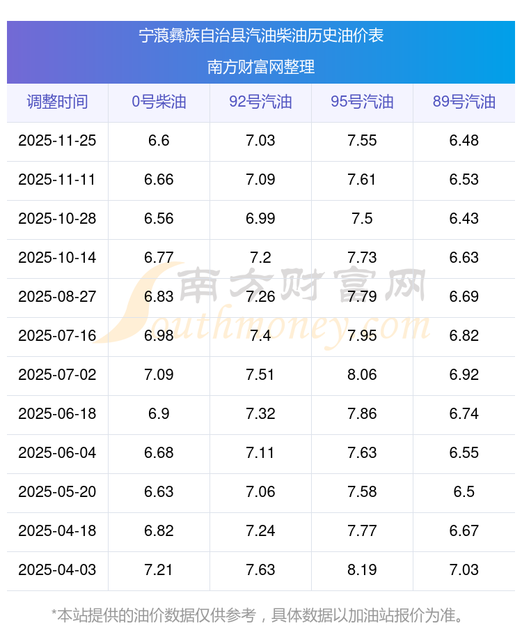 2025年寧蒗彝族自治縣油價(jià)調(diào)整時(shí)間表