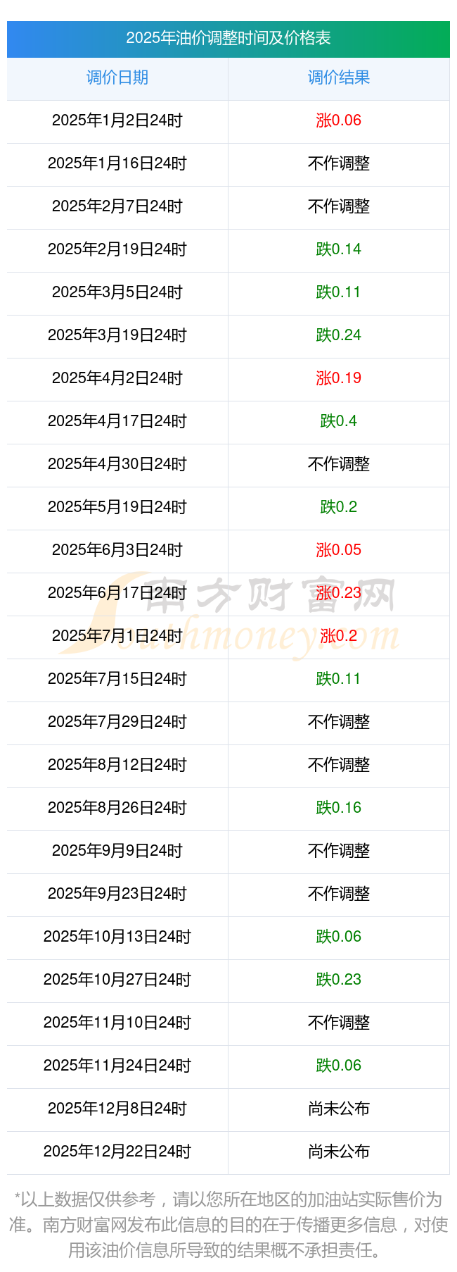 油價調(diào)整最新消息:都勻汽油、柴油12月6日每升的價格為11月25日調(diào)整后的價格,具體油價為:92號汽油7.01元;95號汽油7.41元;89號汽油6.62元;0號柴油6.63元。都勻下一輪油價調(diào)整時間12月8日24時,距離現(xiàn)在還有2.38天。