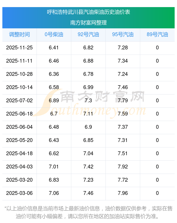 2025年呼和浩特武川縣油價(jià)調(diào)整時(shí)間表