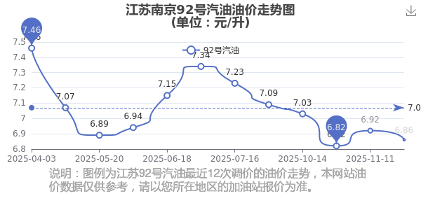 江蘇南京最近調(diào)價(jià)的油價(jià)走勢(shì)圖