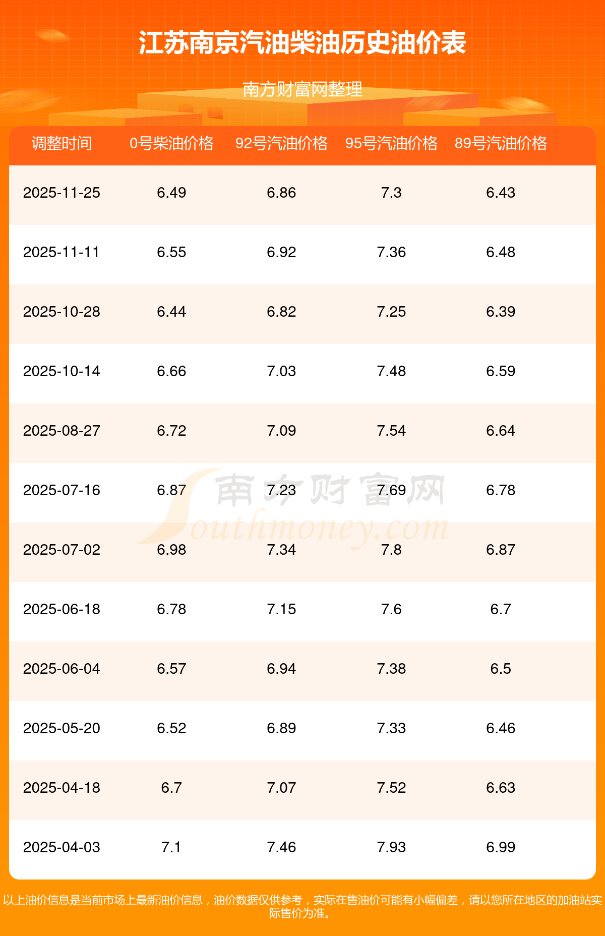 2025年汽油柴油歷史油價(jià)調(diào)整一覽表