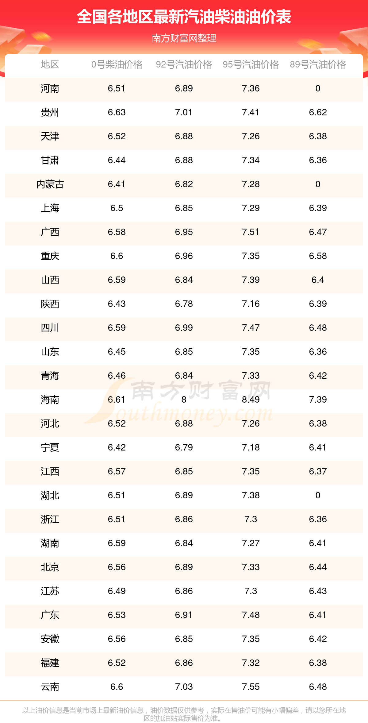 油價數(shù)據(jù)僅供參考,請以您所在地區(qū)的各加油站報價為準(zhǔn)。