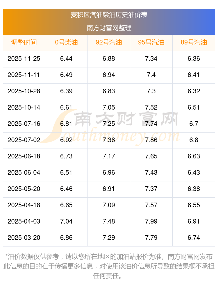 2025年麥積區(qū)油價(jià)調(diào)整時(shí)間表