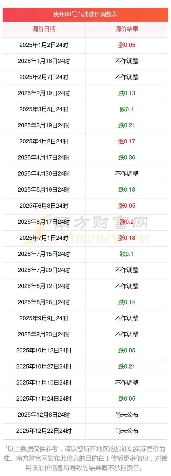 油價數(shù)據(jù)僅供參考,請以您所在地區(qū)的加油站報價為準。南方財富網(wǎng)發(fā)布此信息的目的在于傳播更多信息,對使用該油價信息所導致的結果概不承擔任何責任。