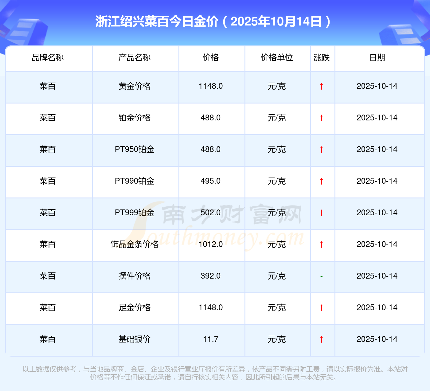 今日金價(jià)2025黃金價(jià)目表_浙江紹興最新菜百今日金價(jià)多少錢一克?(2025年10月14日)