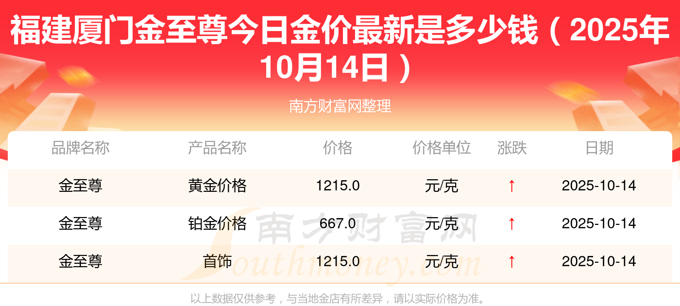 2025年10月14日福建廈門金至尊黃金價(jià)格表最新公布_今日黃金價(jià)格查詢