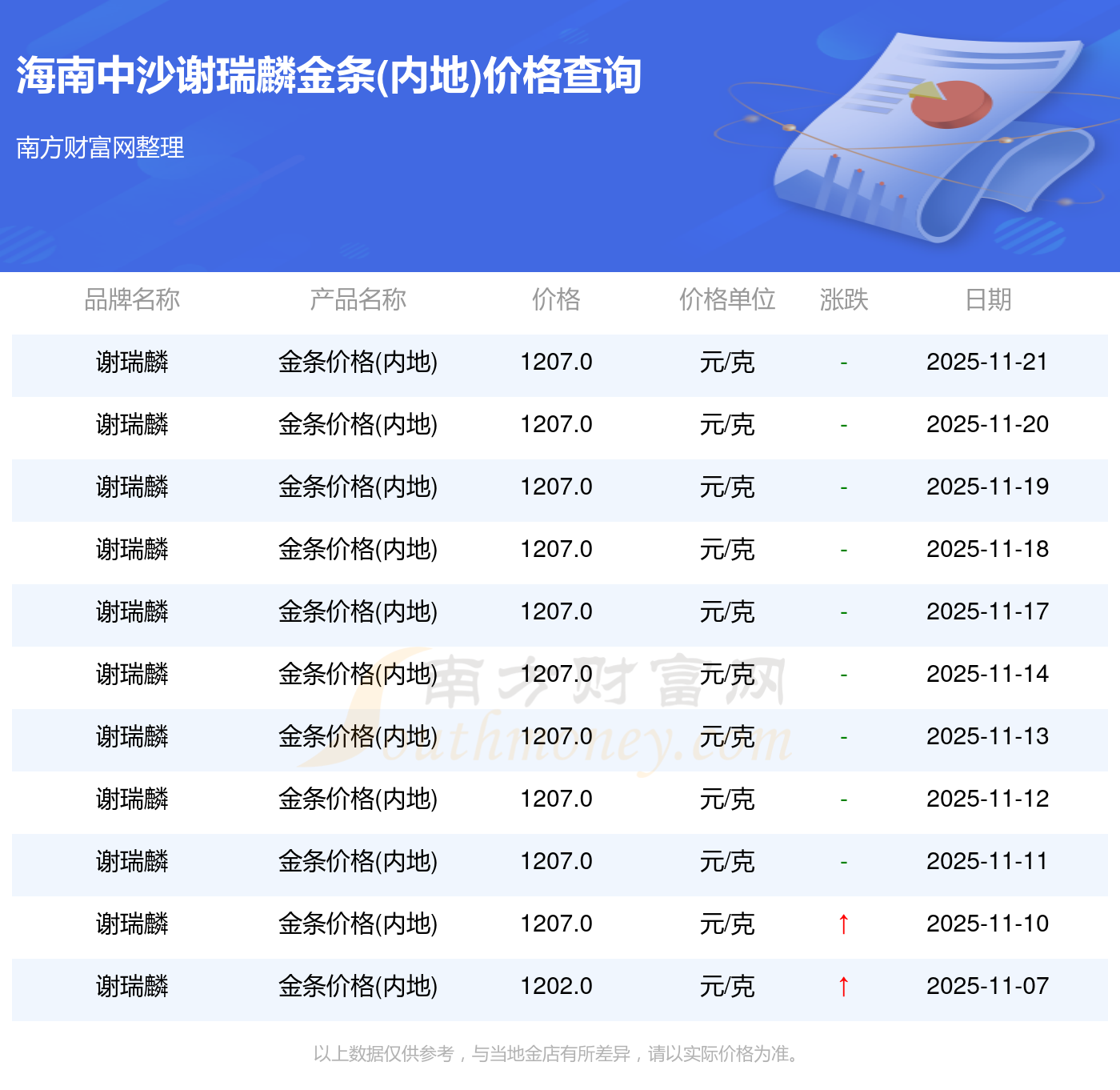 以上數(shù)據(jù)僅供參考,與當(dāng)?shù)亟鸬暧兴町,?qǐng)以實(shí)際價(jià)格為準(zhǔn)。