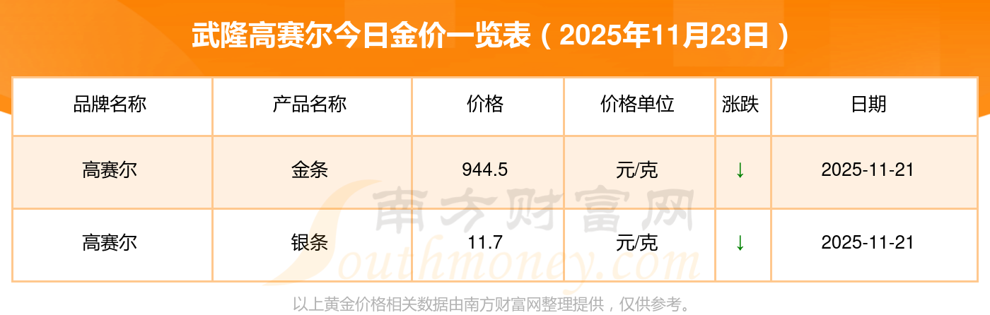 武隆高賽爾金價今日價格最新_武隆高賽爾黃金多少錢一克2025年11月23日,隨小編來了解一下詳情。