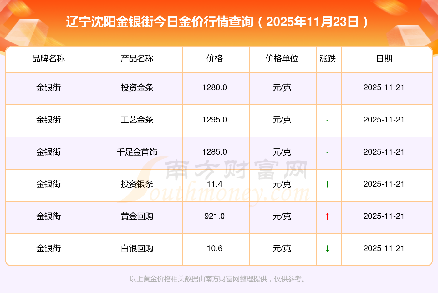 今天黃金價格是多少?現(xiàn)在黃金一克的價錢是怎樣的?2025年11月23日遼寧沈陽金銀街一克黃金對應的價格是多少?黃金價格1305.0元/克,鉑金價格616.0元/克,飾品金價(內地)1305.0元/克,黃金飾品(香港)45110.0,鉑金價格(香港)17570.0,金條價格(香港)40690.0,金條金價(內地)1143.0元/克,黃金價格1298.0元/克,鉑金價格600.0元/克,足金價格1298.0元/克,黃金價格1266.0元/克。