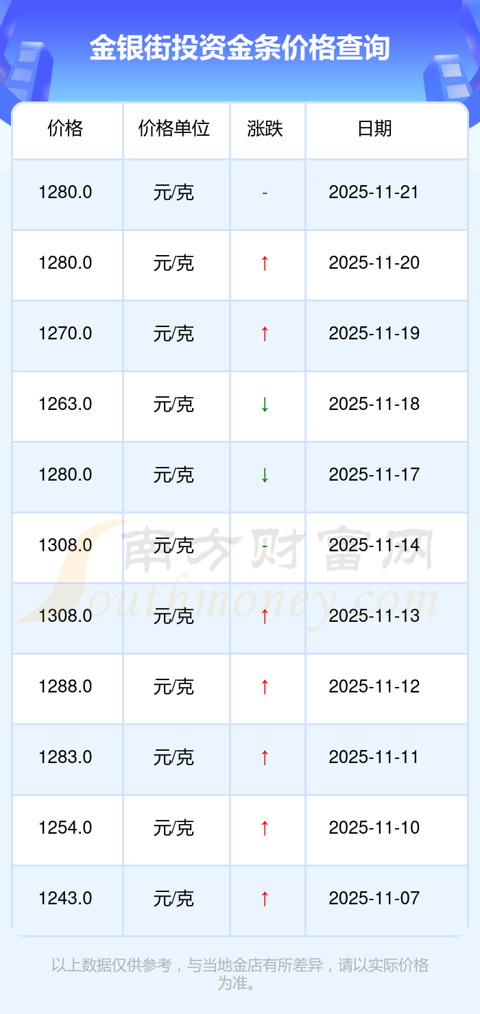 2025年11月23日金銀街投資金條價(jià)格多少一克?最新金銀街投資金條價(jià)格表查詢(xún),一起來(lái)看看吧!