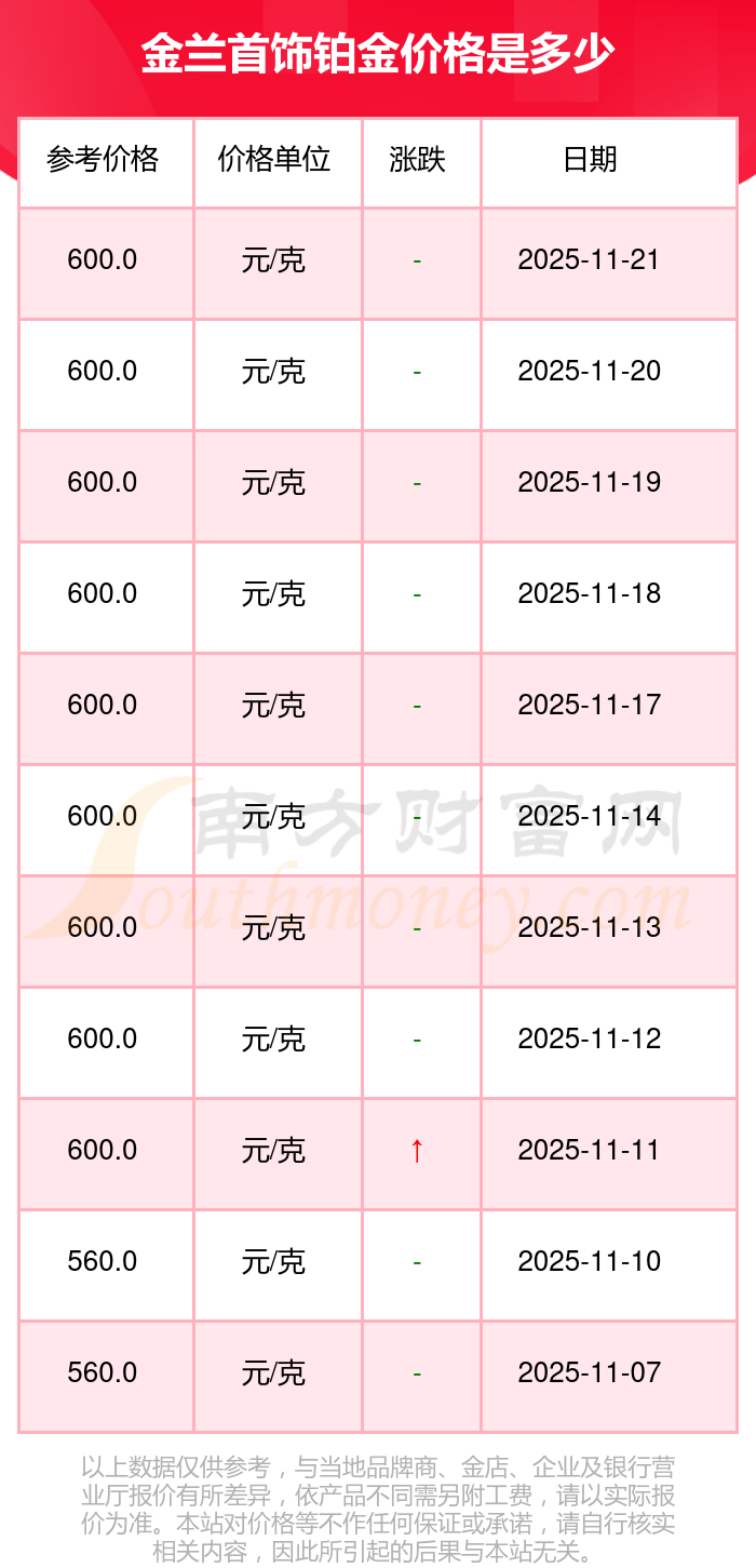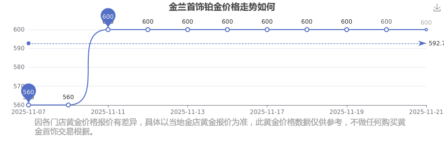600.0元/克成為金蘭首飾今日 鉑金價格的最新交易的價格。