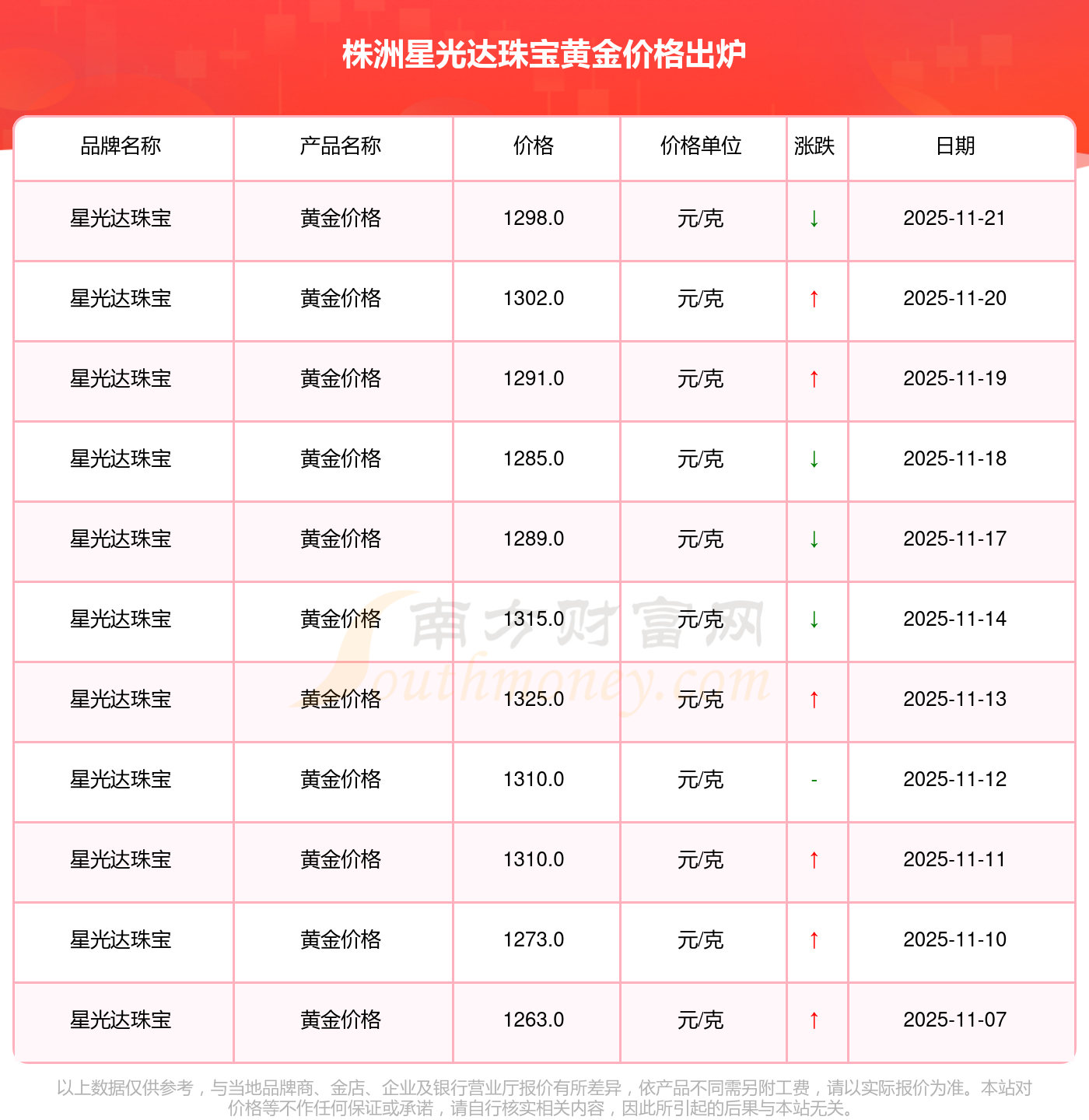 今天是2025年11月23日,周大福、周大福、周大福、周大福、周大福、周大福、周大福、老鳳祥、老鳳祥、老鳳祥、周六福等各大金店品牌黃金價(jià)格最新價(jià)格如下:周大福1305.0元/克、周大福616.0元/克、周大福1305.0元/克、周大福45110.0、周大福17570.0、周大福40690.0、周大福1143.0元/克、老鳳祥1298.0元/克、老鳳祥600.0元/克、老鳳祥1298.0元/克、周六福1266.0元/克。