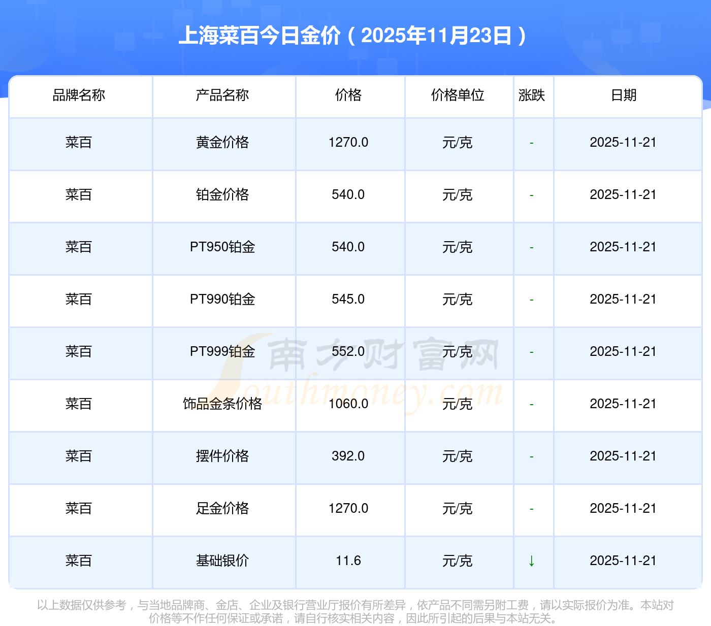 上海菜百金價今日價格最新_上海菜百黃金多少錢一克2025年11月23日,隨小編來了解一下詳情。