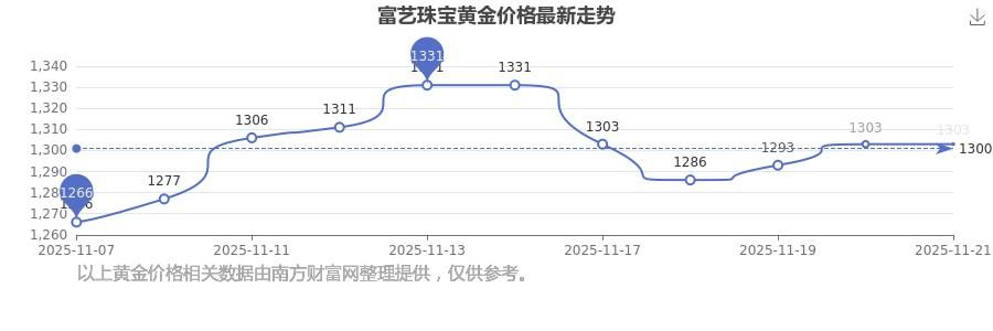 今日富藝珠寶黃金價(jià)格是1303.0元/克。