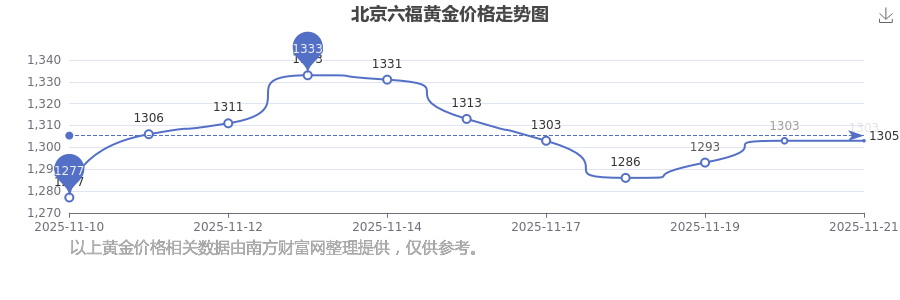今日北京六福黃金價(jià)格最新為:1303.0元/克。