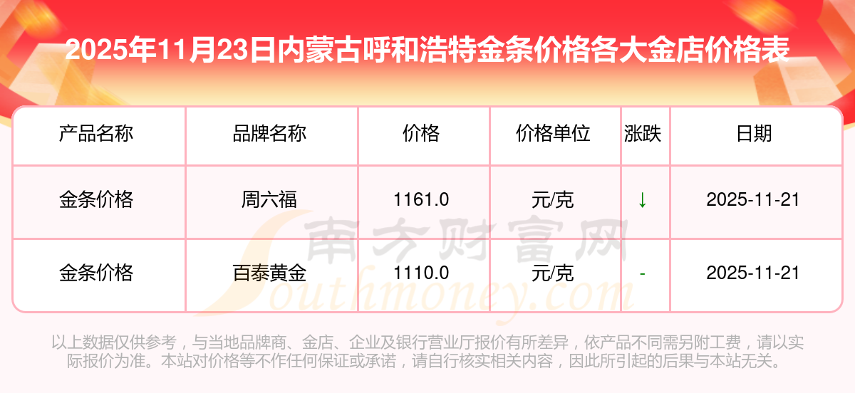 一、內(nèi)蒙古呼和浩特各金店金條價格表來了
