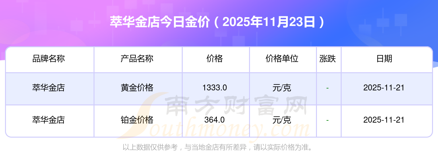 2025年11月23日萃華金店金條多少錢1克 現(xiàn)在湖北恩施萃華金店黃金價格查詢