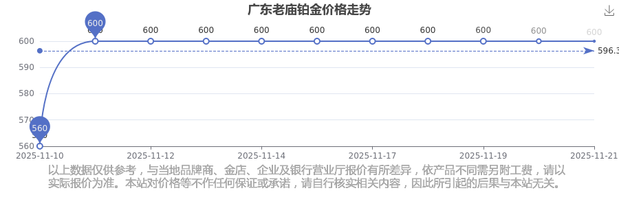 (2025年11月23日)今日廣東老廟鉑金價格是600.0元/克。