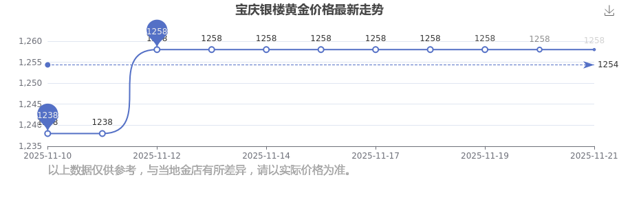 2025年11月23日寶慶銀樓黃金價格:1258.0元/克。