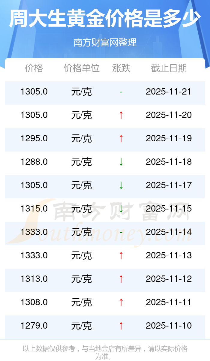 以上數(shù)據(jù)僅供參考,與當(dāng)?shù)仄放粕、金店、企業(yè)及銀行營業(yè)廳報價有所差異,依產(chǎn)品不同需另附工費,請以實際報價為準(zhǔn)。本站對價格等不作任何保證或承諾,請自行核實相關(guān)內(nèi)容,因此所引起的后果與本站無關(guān)。