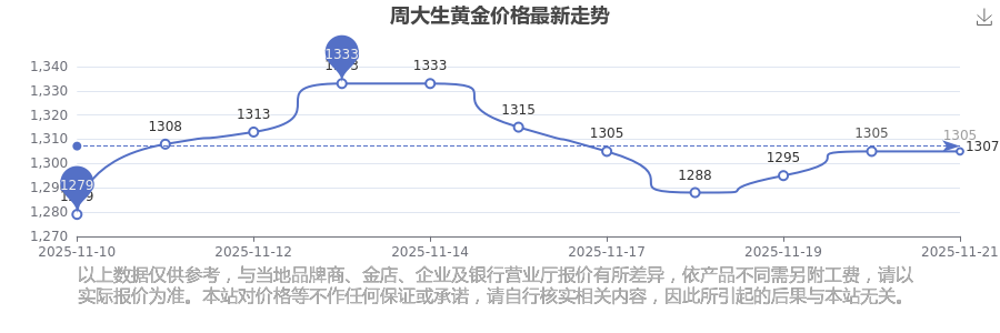 今日周大生 黃金價格,最新確定為1305.0元/克。