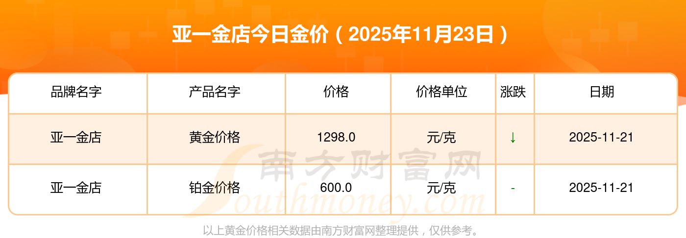 今日黃金價格查詢_現(xiàn)在金價黃金多少錢一克_亞一金店金價實時行情,一起來看看吧!