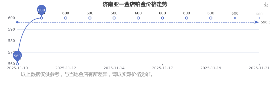 2025年11月23日當(dāng)天,濟(jì)南亞一金店鉑金價(jià)格的單價(jià)是 600.0元/克。