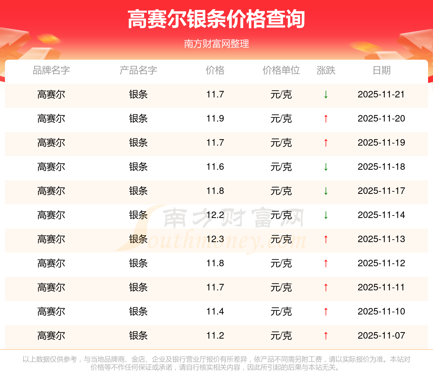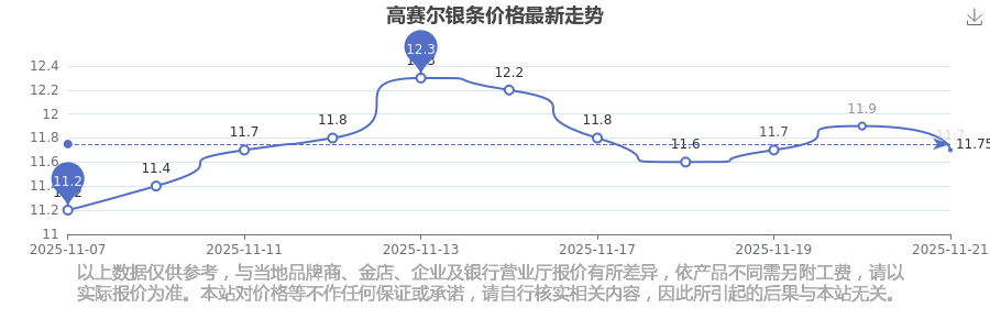 今日高賽爾銀條價(jià)格最新是11.7元/克。