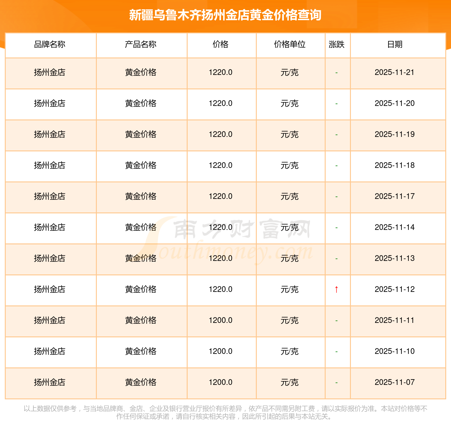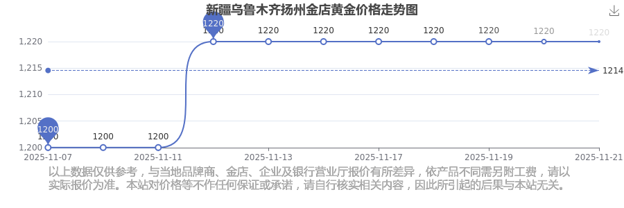 今日新疆烏魯木齊揚州金店黃金價格是1220.0元/克。